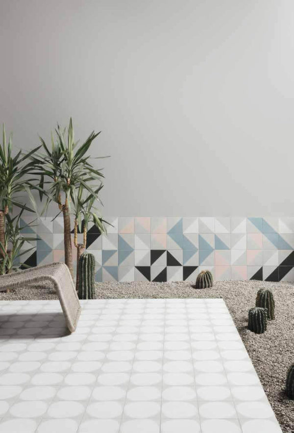 Un tamaño de 15×15, un color principal: el típico cemento gris – en 4 variantes – blanco, negro, rosa y azul, que a su vez generan 4 piezas decorativas, creando un amplio espectro de alternativas.